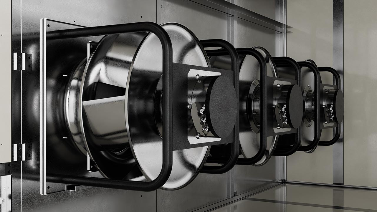 - EC-puhallin PFC:llä: Harjattomat tasavirtamoottorit mukautuvat kuormaan dynaamisesti, pienentävät energiankulutusta ja parantavat hyötysuhdetta aktiivisen tehokerroinkorjauksen avulla.